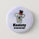 En knapp med en söt koala björn i en svart top hat med ett rött band. Finare och hårig. Texten säger Koalaty Groomsman. Lustigt pun. Ställ in på en ljus lila-bakgrund.