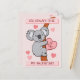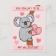Cute koala Valentine Day pun. Du Koalafy ska bli min Valentine. Ett sött handdraget grått koala-tecknad-djur med hjärtan. All text är anpassade. Texten "BE MINE" på godishjärtat kan ändras. Rosa bakgrund.