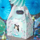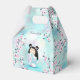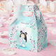 En söt kokeshi-docka i en damskij rosa turkos kimono med blommar för dold rosa och en bokeh turkos-bakgrund. Anpassa den med en namn.
