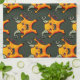 Kökshandduk i djävulen med en roligt gothic mönster skapat från en konstig i bläck teckning av en demonskapelse av gult med horn som log sig lyckligt och som visar sina vassa tänder.