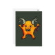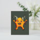 Cute djävulen-vykort med ett bläck teckning av en demonisk varelse av gult konstig med horn som leker glatt och visar sina vassa tänder.