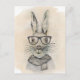 Cute, konstig vattenfärgsbunny med glasögon och sc vykort