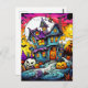 Detta konstnärliga och färgstarka vykort har ett hemsökt hus i måndagsljus.