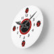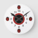 Cute ladybug wall clocks with red black and white colors with little ladybugs on the clock face in this colorful wall decor animal clock design for your kitchen, bathroom, or any room in your house you want to add some color and character. Great for kids rooms or modern kitchens.