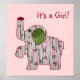 Ett sött lappverk i land stil-rosa-elefant med rosa och grönt blommigt strimlade mönster med ord: Det är en flicka! Tryckt mönster, inte material.