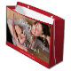Cute stor röd Baby Första julklappen med utbytbara foto- och textpåsar - du kan lägga till foto, familj namn och år. Fotografi © Storytree Studios, Stanford, CA
