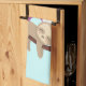 En kökshandduk med en illustration med en rolig brun slav som glatt klämtar på en träd gren. En färglös regnbåge bakom honom tillsammans med en rosa sol som svävar över huvudet. Cute, förtjusande och trendig.