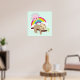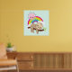 En poster med en illustration som visar en rolig brun slav som glatt klär på träd gren. En färglös regnbåge bakom honom tillsammans med en rosa sol som svävar över huvudet. Cute, förtjusande och trendig.