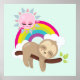 Cute Lazy Sloth med Sol och regnbåge Poster
