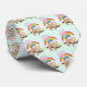 En mönstrad slips med en illustration som visar en rolig brun slav som glatt klämmer på träd gren. En färglös regnbåge bakom honom tillsammans med en rosa sol som svävar över huvudet. Cute, förtjusande och trendig.
