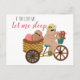 En söt illustration av en sluttning som kör en cykel medan hans älskling sover i basket i baksätet. Linnande citat: "Om du kärlekar mig, låt mig sova."