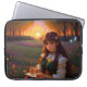 Cute Ledsen Anime Stil Woman i Meadow vid Sunset Laptop Fodral