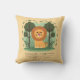 Ett berömvärt dekorativ kudde för en daghem med en snygg lejon utformning mot en gult bakgrund som kan vara personlig med en baby födelseinformation. Du kan till och med anpassa bakgrunden till färg om du vill.