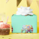 En söt design av ett lapptäcke av elefant i pastellregnbåge färg mot en ljusblå himlar-blå bakgrund. Det här djuret är en viskartad, barnlik, retro-leksak inspirerad design av ett populärt elefant-afrikanskt djur av Savannah.
