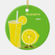 Ett tvåsidigt prydnadsämne med grönt bakgrund och en leende citron som står bredvid ett högt glas citronad. Utsmyckningen har ett anpassbart namn och år som du kan göra själv.
