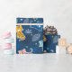 Den mörk blått bakgrunden är den lilla lycklig-färgade leoparden med djungel blad.