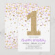Cute Lila Guld Glitter Konfetti 1:a födelsedag Inbjudningar