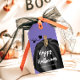 Cute Lila Script Pumpkin Halloween Presentetikett