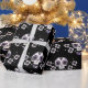 Slå på presenter på ett bra sätt med coolan papper, med lila mexikanska döskallar mönster.