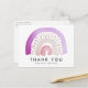 Modern regnbåge tack vare vykort med en vattenfärgad regnbåge i skuggor av lila, och rosa med "Tack" som visas nedan med svarta bokstäver. Anpassa det regnbågstack som du vykort genom att lägga till ditt namn eller anpassningsbar. Baksidan av vykortet innehåller mycket utrymme för ditt skrivna eller handskrivna meddelande i returadressen. Det regnbågstack du har för att du har vykort är perfekt till använda för babyduschar, födelsedagsfester och mycket mer!
