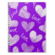 Cute Lila White Scribbered Heart med Kärlek Script Anteckningsbok