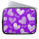 Cute Lila White Scribbered Heart med Kärlek Script Laptop Sleeve
