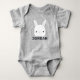 This design features cute little bunny rabbit with personalized name in grey modern sans serif font style.