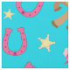 Det här söta, westerna temat, mönster har en vacker, liten cowgirl på sin pony, rosa hästskor, grönt cactus och gult Star-märken. Perfekt till cowgirl i oss alla.