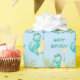 En ynklig liten tealblått och guld-dinosaurer som håller en födelsedagsballong är kännetecknet på detta barns presentfigursättning pappert. Dinosauribilden upprepas över yta, tillsammans med texten "Grattis på födelsedagen". Din lilla födelsedag kommer att kärlek den här pappra! *Bilddesign kredit till ATArtDigital på Etsy.