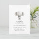 Gratulera till din lilla speciella dag med denna berömvärda elefanttematiska inbjudan. Med en mjuk vattenfärgselefant och elegant typografi är det perfekt för en söt och snyggt första födelsedag. Helt anpassade med party-information och OSA info, är den här designen perfekt för safari eller djurtemat firande.