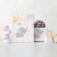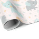 Cute Little Elephants med ballonger, stjärnor och flaggor. Pastel Grått, mynta och orange på gräddbakgrunden. Perfekt för babyduschar och barns födelsedag.