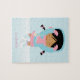 Anpassningsbar pussel har en vacker vektorillustration av en iskissande flicka och snöflingor på bakgrunden. Anpassa med din lilla flickas namn, monogram, initialer eller text du själv väljer för en sorts gåva.