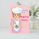 En så söt liten flicka i en rosa polkattklänning, apron och kock gör lite bakning. En inbjudan i roligt barns födelsedag party med ett bakande party-tema som är så bra och lätt att anpassa med ditt barns personuppgifter i party.