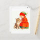 Cute Little Girl With Kitten Chritmas Vykort. Vintage Scandinavian style, Sweedish style.