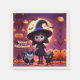 Napkins har en söt liten häxa i en svart dräkt med katter och pumpor på Halloween-natten. Roligt Halloween fest! Anpassningsbar.