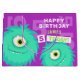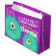 Ljus och roligt pojkar presentväska. Ett sött hårig blått/grönt monster i lycklig. Anpassa med namn och ålder.
