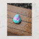 Fotografi av Angelandspot av lite målad sten med blå bakgrund och ett lila hjärta med lite chip så att du kan se att sten var svart från början.
