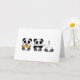 Tre vackra små pandor sitta bredvid varandra. En lycklig-panda bär en T-skjorta med "I Hjärtpanda" på den. En annan är att erbjuda en grönt som håller fast vid en tredje panda som har somnat.