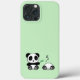 Ett par söta tecknad pandor. Den lämnat pandan håller en bambu som tittar på högerna som somnat.
