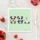 Tre vackra små pandor sitta bredvid varandra. En lycklig-panda bär en T-skjorta med "I Hjärtpanda" på den. En annan är att erbjuda en grönt som håller fast vid en tredje panda som har somnat.
