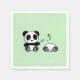 Ett par söta tecknad pandor. Den lämnat pandan håller en bambu som tittar på högerna som somnat.