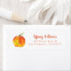 Adressetikett för återvändande med sött leende på persikofrukten på hennes/hans ansikte. Etiketten var designad för en söt som en persikotematdusch.
