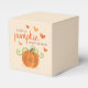 Say thank you in style with these cute little pumpkin on the way baby shower favor boxes. The design is easy to personalize with the date of your shower or the expected birth date of the baby and your family and friends will be thrilled when they receive these favor boxes filled with treats of your choice to say thank you for coming to the shower and as a special keepsake from the event. Matching shower items can be found in the collection.