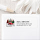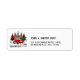 En roligt och söt julreturadressetikett med traditionellen lilla röda lastbil med mönster träd. för någon för helgdagarna.