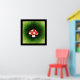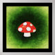 En söt illustration av en fläckig röd svamp. Bakgrunden är en grönt som väcks struktur.