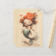 Att illustrera denna mycket förtjusande lilla sjöjungfru med ett stort leende är ett klart kawaii! Den här pennteckningen har en vintage känsla med sitt nedsänkta färg. Den lilla sjöjungfrun på detta vykort kommer säkert att le på någons ansikte.