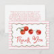 Add a fresh and playful touch to your baby girl baby shower stationery with this charming thank you card featuring hand-painted watercolor cherry tomatoes on the vine. A cheerful "Thank You" message is written in whimsical red script, framed by a scalloped green border and soft pink watercolor stripes for a light, feminine, and summery feel. Perfect for garden baby showers, food-themed baby showers, and summer baby showers for a girl, this design includes space on the back for a personalized typed or handwritten message. A sweet and memorable way to show your gratitude to family and friends after your special day.