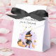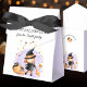 Cute Little Witch Halloween Favor Box med kutest vattenfärgshäxa, pumpor och svart katt i lila, orange och svart. Lila.
