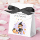 Cute Little Witch Halloween Favor Box med kutest vattenfärgshäxa, pumpor och svart katt i lila, orange och svart.