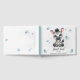 Cute baby shower or birthday guest book featuring adorable little male zebra with some blue love hearts
